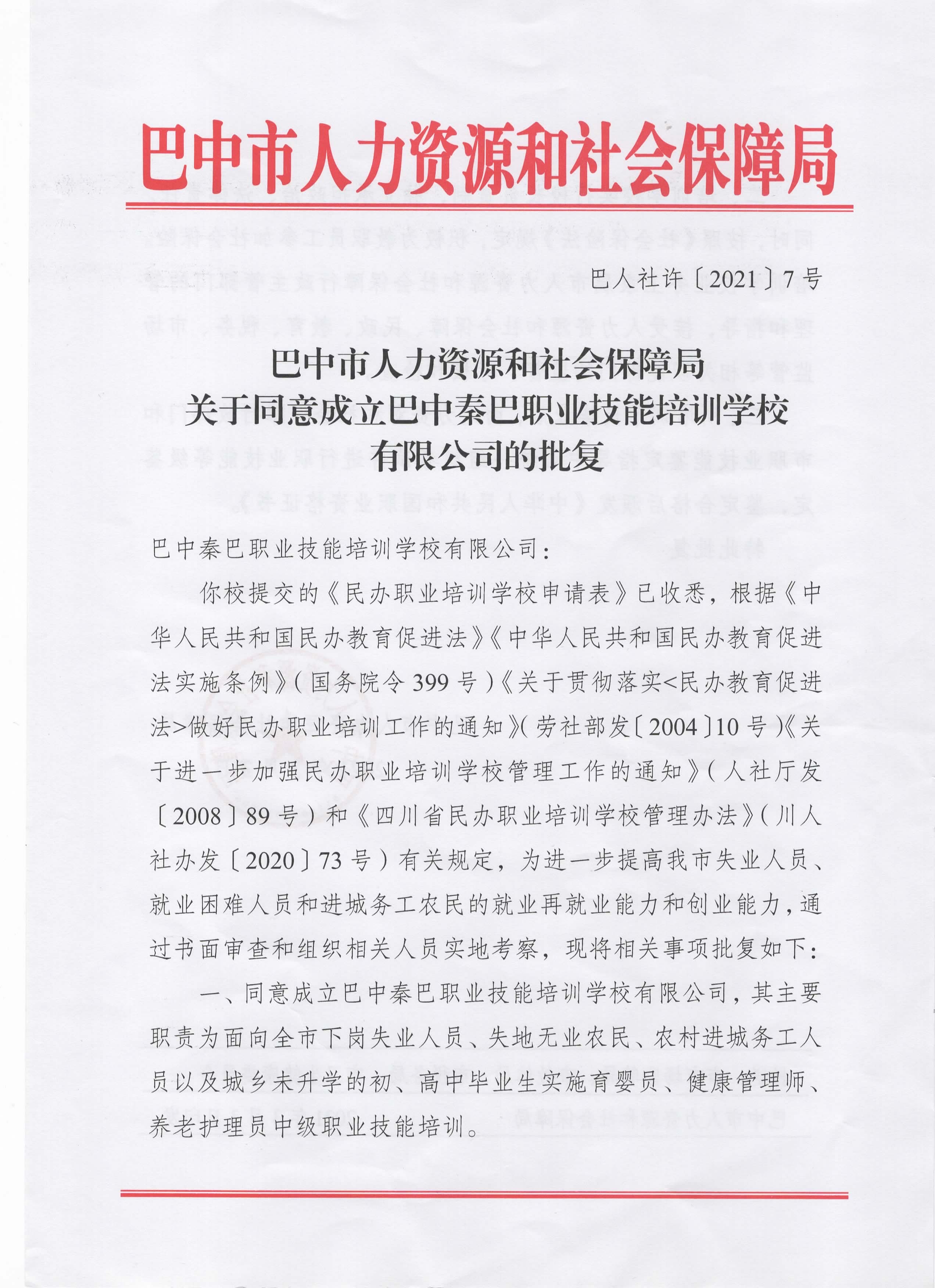 我公司成立于2021年3月3日,是經巴中市人力資源和社會保障局批準、巴中市巴州區市場監督管理局登記注冊并頒發營業執照的職業技能培訓機構。經四川西部人力資源開發中心授權、巴中市人力資源和社會保障局批準備案,是“國家職業技能等級認定四川西部人力資源開發中心直屬考評站”, 是巴中市唯一從事職業技能培訓及鑒定、創業培訓與服務、技能等級評價的培訓機構。